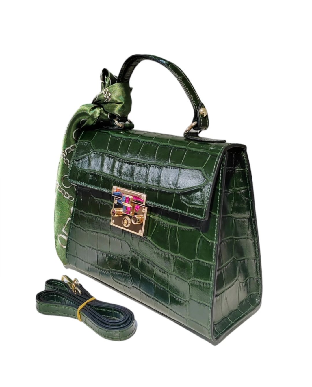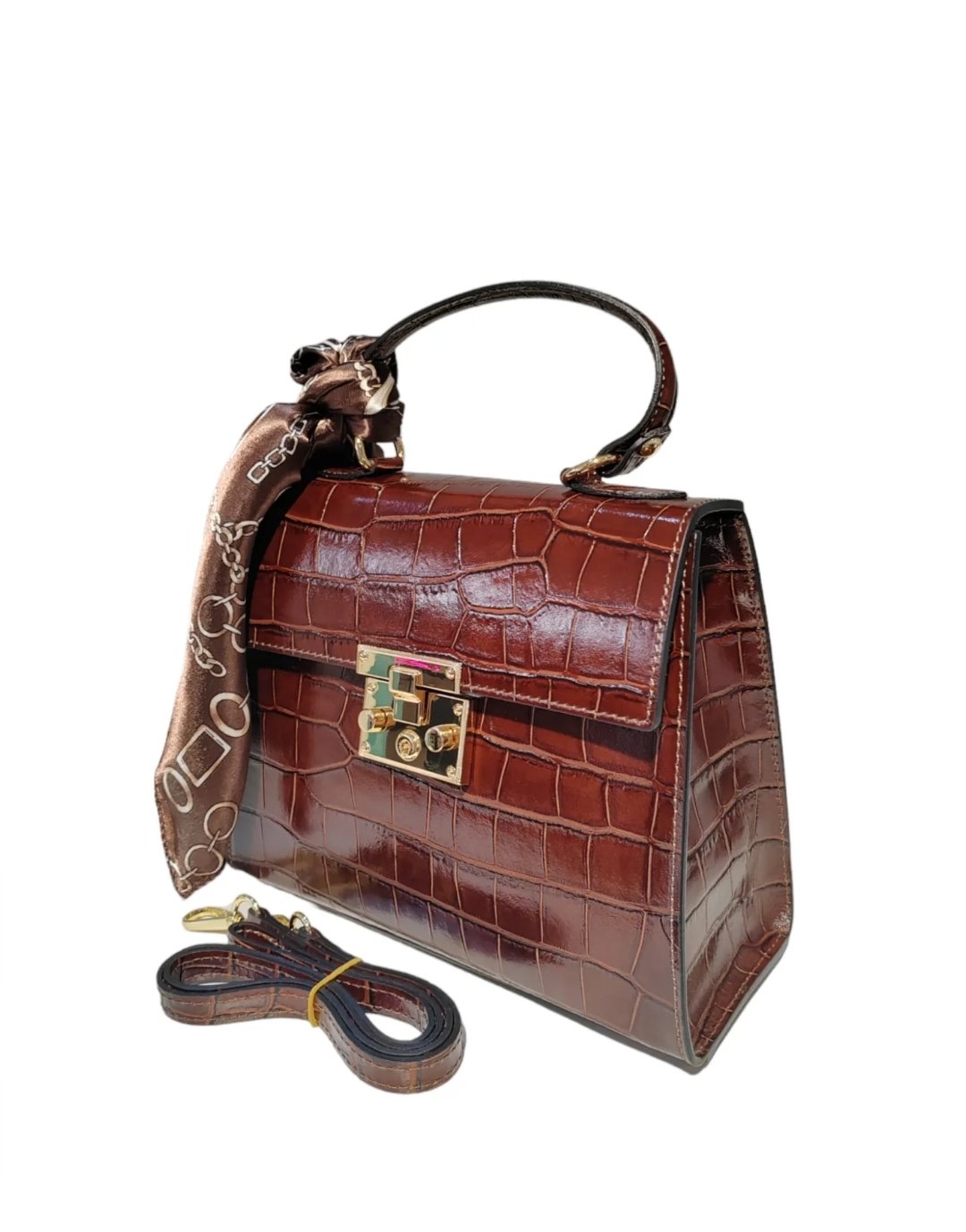 Sac En Cuir Croco , Avec son petit Foulard qui fait son charme